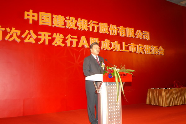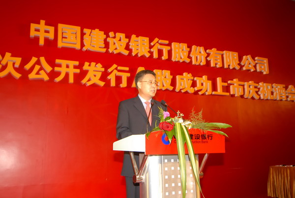 图为中国建设银行首次公开发行A股成功上市庆祝酒会现场。