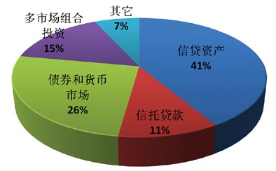债券和货币市场类产品依然保持着四分之一左右的市场占比,此类产品的市场占比一直不高的原因主要在于,其收益率难以提高,特别在目前市场基准利率偏低的情况下。图2中所示的“多市场组合投资”是指一款产品的投资领域在两个以上,比如常见的既投资信贷资产,又投资债券市场。此类产品在第四季度的市场占比为15%。另外还有7%左右的“其它”类产品,其实指的就是单一投资“打新股”、QDII、结构性、证券投资等方向的产品。