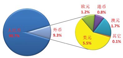 图3 2009年第四季度各币种产品占比