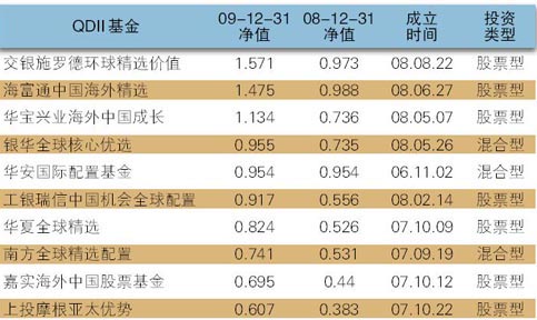 2009年QDII基金表现
