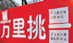 北京地坛公园里,已经形成传统的“相亲大会”定期热闹地举办着。通过相亲大会成功走到一起的恋人照片,挂满了横幅。寻找人生伴侣是终身大事,当然是醒目的“万里挑一”。这个春天,找到只属于你的人间四月天了吗?刘静/图