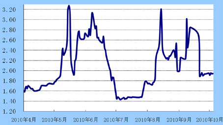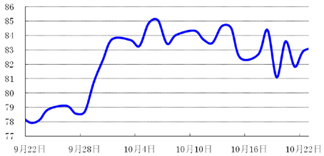 美元上周波动幅度较大,先因盖特纳言论力挺美元出现大幅反弹,后又由于美国房地产市场出现止赎门问题大跌,后期由于G20财长会议,市场逐步转入谨慎,美元窄幅波动,欧元上周随美元在1.40的关键点位下方窄幅波动,日元再创新高,最低曾触及80.84一线。人民币兑美元大幅走高后上周小幅下滑