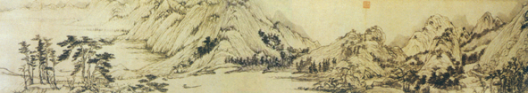 黄公望,本名陆坚,元四大家之一。《富春山居图》为黄公望为同门师弟无用师描绘的富春山景色,历三四年方完成,时黄氏八十二岁,全卷布局疏密有致,变幻无穷,以清润的笔墨,简远的意境,把浩渺连绵的江南山水表现得淋漓尽致,达到了“山川浑厚,草木华滋”的境界,是山水画最高境界的长卷,中国十大传世名画之一。原画曾遭火焚,断为两段,前半卷被重新定名为《剩山图》,现藏浙江省博物馆,为“镇馆之宝”,后半卷《富春山居图》无用师卷,现藏台北“故宫博物院”。