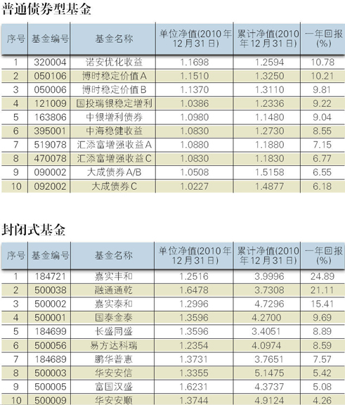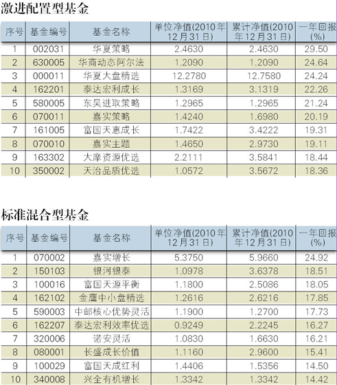 2010年各类基金收益排行榜