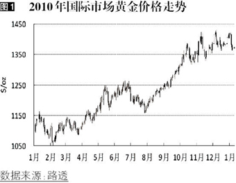 2010年,世界主要经济体在量化宽松政策后经济开始复苏,经济前景向好,但是通胀信号逐渐出现。前三季度经济疲弱,金价经过一二季度的盘整和冲高后,三季度金价处于单边上涨通道并持续刷新历史高位;四季度在经济预期向好的情况下,金价波动加剧。随着经济危机的结束,世界经济在2011年可能逐渐步入正常轨道,黄金也可能随之逐渐回归基本面。