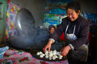 12月天渐渐冷了,特别是古道上的人家(算是坝头),更是冷得厉害。我们又想起了姚大哥,决定去看看他,影友老吴还特意给姚大哥买了一袋米、一袋面,正巧赶上老俩口准备吃水饺,于是俺和老吴同姚大嫂一起包起了饺子……