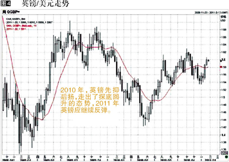 展望2011年,英镑可能持续自去年年中开始的上升趋势。英国由于较少受到欧债危机影响,相对欧元来说,前景要更为乐观。