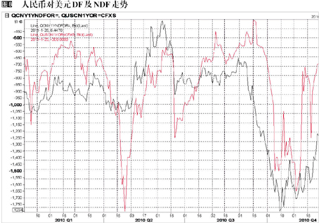 人民币远期市场同样需要关注,2010年的人民币对美元远期市场情况基本可以分为三个阶段(图8):
