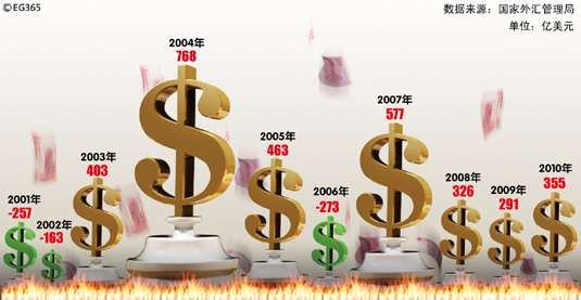 中国国家外汇管理局2月17日发布了第一个跨境资金流动监测报告,首度披露了中国官方对“热钱”的估算数据。过去10年,“热钱”年均流入近250亿美元,占同期外储增量的9%。图片作者:EG365/CFP