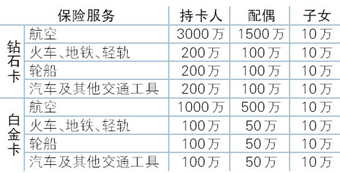 建行卡分别从航空、火车、地铁、轻轨、轮船、汽车等交通工具度身定制了不同交通工具意外险,惠泽亲属。保险的最高额度也是在行业同类卡种中位居第一。从不同的角度、从受益人范围都进行了最完善的保障。