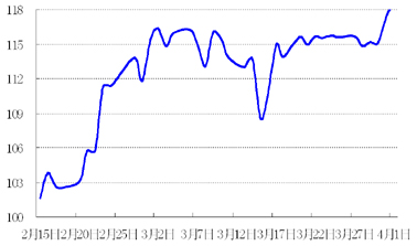 利比亚战事似乎不会在短期内解决,而科特迪瓦、也门、埃及等地的政局也出现动荡,推动油价再创新高,避险需求也继续支撑金价