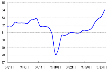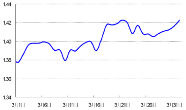 美国就业数据继续好转,但建筑业支出数据依然低迷,美元指数几次欲突破下降通道,均告失败。欧元本周短暂回调整理后上行至1.424。日本核危机未解决,以及日本政府与多国央行的联合干预推动日元贬值