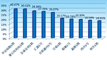 从结构看,结构型产品的表现总体优于非结构型:结构型的净值平均增长1.98%,而非结构型却仅增长0.73%;从单款产品看,484款的收益为负,其中由湖南博丰投资担任投顾的天星1号表现最差,亏损21.45%;576款实现正收益,其中由北京华富励勤担任投顾的华富励勤1期表现最好,净值增长30.47%。(图3
