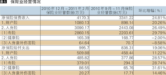 新年第一季度,保险销售出现井喷行情:201012-20112月(截稿时官方数据仅更新至2011228,因此选取201012-20112月三个月作为一个统计季度)保险业保费收入为4170.30亿元,较上一个季度大幅增长24.81%。其中,寿险的保费收入增长幅度最大,收入为2860.15亿元,较上季度增长29.79%