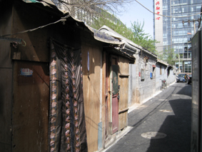 2011年4月的前百户胡同。胡同还剩下约百米长的一截,站在胡同中央,与写字楼里已是两个世界。