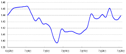 欧债危机仍在蔓延,美国债务上限谈判僵持,欧美数据均不尽人意,使得欧元兑美元震荡为主,欧元涨42bps至1.4395。人民币兑美元涨至6.436