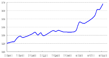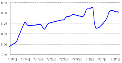 中国7月高顺差数据支持通过人民币升值来舒缓国内通胀压力,人民币对美元接连创出2005年汇改以来新高。受欧债危机、美国信用评级下调等因素影响,欧元对美元波动剧烈