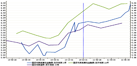 总体来看,全月收益率经过几个震荡来回,但比春节之前有一定幅度的回落,主要受益于流动性改善、1月份CPI低于预期和利比亚动乱的影响,但中长期政策性银行债收益率受10年国开债招标利率走高影响则相对节前有一定幅度上升,国债的表现整体好于政策性银行债。与年初收益率相比,收益率曲线呈现陡峭化上移的特征,政策性银行债的升幅明显大于国债。