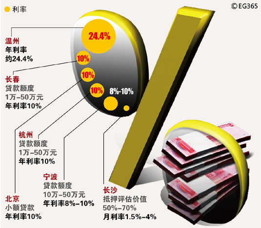 民间借贷的利率水平已超过历史最高值,一般月息是2到6分,有的高达1角,甚至1角5,年利率达180%。而大多数中小企业的年毛利润率不会超过10%,一般在3%—5%之间。据悉,中国人民银行温州市中心支行已于2010年建立了温州民间借贷交易活跃指数监测,该项监测以温州市近1000家融资中介的1300多个银行账户为样本根据抽样调查。从监测结果来看,2010年以来五个季度的账户交易额分别为208亿元、327亿元、262亿元、335亿元和396亿元,规模总体呈增加态势。其中,今年一季度的交易量是上年平均的1.4倍。
