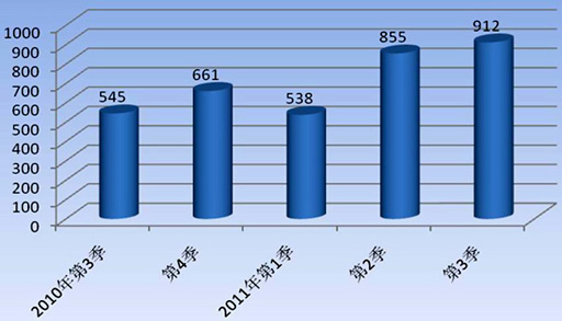 2011年三季度基金成立数量出现回落,共有66只产品成立,较上季度减少20只,减少幅度为23.25%。截至
