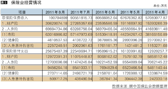 进入2011年3季度,保险业经营并未出现改善。根据保监会公布的数据显示,2011年7月和8月,保险公司实现累计保费分别为9055.18亿元和10070.48亿元,同比增长分别为12.39%和11.21%。而从单月来看,7月和8月当月实现保费分别为1015.30亿元和998.58亿元,环比增长1.67%和-22.53%。总体来看,目前保险公司保费增长速度较上半年有所下降。