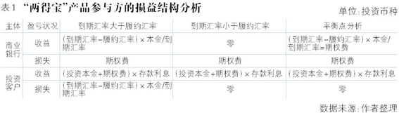 由此可见,在所谓的“两得宝”或“两头利”产品中,一旦汇率表现与银行的预期方向相反,银行的损失是固定的;一旦汇率表现与银行的预期方向相同,则银行的收益上不封顶。在此过程中,投资者的收益是固定的,即投资币种的定存收益与期权费之和,但投资者的浮动收益要分两部分来看,如果是以美元计价,投资者期末是亏损的且亏损额就是商业银行的盈利,上不封顶;如果是以日元计价,则投资者是盈利的,盈利额等于履约汇率和期初汇率之差与投资本金的乘积。这表明,对“两得宝”类的“双币存款”收益,我们要进行辩证分析,不能一概而论。(中国社科院陆家嘴研究基地金融产品中心)