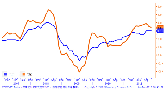 2012年欧洲经济将面临严峻的考验。债务问题国家的财政紧缩不可避免,根据拉美债务危机历史经验来看,若无债务展期重组或外部融资支持,财政紧缩极有可能将欧盟带入衰退之中。同时,虽然四季度的两次欧盟峰会都对欧债问题提出了中长期的解决方案,财政政策一体化也提上日程,但能否达成一致共识和明确执行手段是明年重要问题。