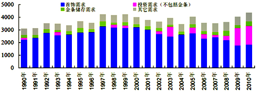 图6 历年黄金需求结构分析(单位:吨)