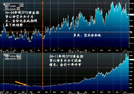 图8 CFTC黄金期货净头寸与金价走势