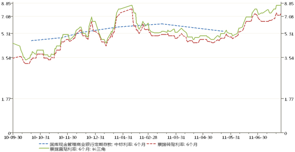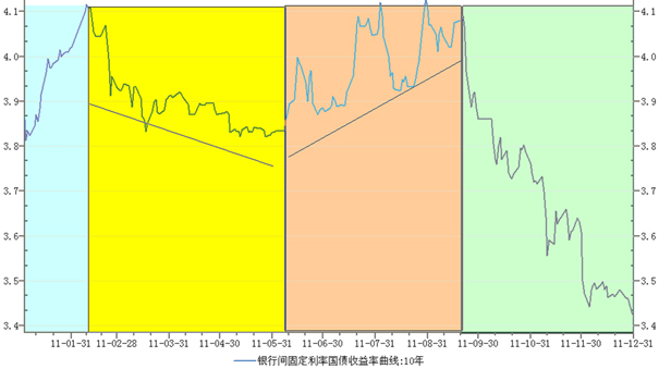 第二阶段(春节后-6月上旬):资金面紧张局面缓解,投资户配置压力利好债市,收益率曲线高位回落;以工业增加值为代表的宏观数据显示经济有放缓迹象,加之日本核危机的爆发推动避险情绪的回升,制约中长债收益率冲高
