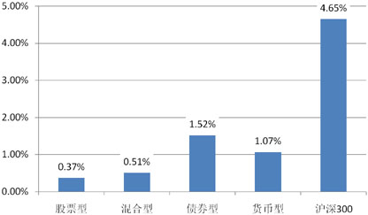 进入2012年1季度,A股市场先扬后抑,沪深300指数当季上涨4.65%;债券市场则继续震荡向上。受益于股票市场和债券市场的好转,本季度大部分基金勉强飘红。根据普益财富统计,成立满3个月的318只股票型基金平均上涨0.37%,其中表现最好的为泰信蓝筹精选,当季上涨13.73%;176只混合型基金平均上涨0.51%,其中表现最好的为华商领先企业,上涨了9.30%。债券型基金和货币型基金继续维持正收益,其中,纳入统计的231只债券型基金的平均收益为1.52%,80只货币型基金的平均收益则为1.07%。(图6)