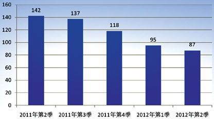 图1 2011第2季~2012年第2季集合信托新品发行量(单位:款)