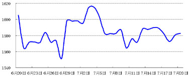 周初美国将推出QE3的预期升温,推动金价上涨,其后伯南克讲话未明确提及QE3,且欧元区疑虑犹存,金价回吐涨幅,黄金价格全周区间震荡