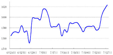 上周美元兑人民币先涨后跌。前半周人民币贬值预期有所强化,即期汇价接近6.40心理关口,后遇大行集体抛汇,人民币震荡走强。欧洲央行行长德拉吉誓言将维护欧元区完整的言论刺激欧元等非美货币走强