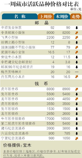 8月初,“双台风”对申城影响有限,也让酷暑暂息。藏市人流微增,惟成交并未有实质性放大,市场热点依然捉襟见肘。邮市:第三轮生肖版张在经过半个多月的上扬后,8月初即有短线抛压沽出,领涨的“壬辰龙”下半周从148元高位下挫到130元,“甲申猴”全张票也回落至670元。此外,