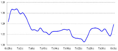 周初欧美政策落空使欧元速跌,但周五美国就业数据很好提升了风险偏好,最终欧元涨68bps报1.239美元。美元兑人民币跌86bps报6.3721元