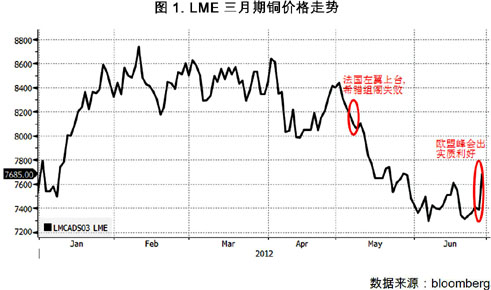 6月,虽然希腊支持紧缩的新民主党赢得大选并成功组阁,使风险情绪改善,但美联储选择延长扭转操作而非推出QE3,拖累铜价低位徘徊。然而