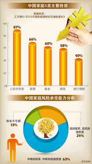 2012年09月11日,汇丰银行对中国8个城市的超过1000个家庭进行调研发现,受调研的家庭流动资产达到38.6万元。调查显示,过去一年中,超过六成(64%)的受访家庭表示实现财富增长,而23%的受访家庭表示承受了资产减值,这些家庭的资产配置多以股票和基金为主。本次调查按生命周期将受访家庭分为三大类别:25-34岁处于家庭建立期、经济压力相对较大的年轻家庭;处于家庭发展期、大部分已婚且有未成年子女的35-44岁家庭;迈入稳定期的45-55岁家庭,其子女多处于深造或初入职场的阶段。图/CFP