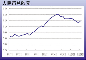9月24日至29日当周,节前受银行调整美元头寸因素影响,美元抛盘增大,人民币兑美元汇率震荡走高,并创下2005年7月汇改以来的新高,28日美元兑人民币报收6.2841