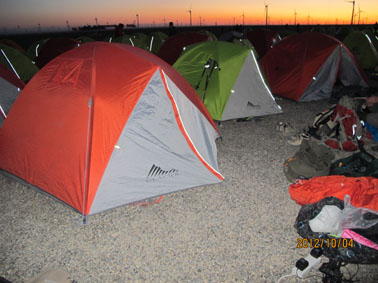 第六届“玄奘之路”戈壁成人礼徒步旅行,从10月2日至5日在敦煌举行,共有60对家庭120位成员参加活动,行走四天,途经沙漠、雅丹地貌、戈壁滩、红柳滩、盐碱地、戈壁丘陵、渡疏勒河等,经历了太阳暴晒、大风、沙漠小雨、夜间接近0度的低温等天气,最长一天行走11个小时,全程共110公里路程。