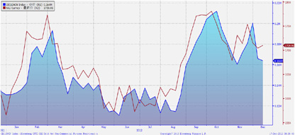央行仍然是黄金的坚实购买方,2012年前三季度各国央行黄金储备同比增持9%,共计买入374吨。发展中国家央行购金增速最快,金价低迷时,各发展中国家央行纷纷增持黄金,以实现外汇储备多元化。其中,韩国央行在7月份购入黄金16吨至70.4吨,黄金储备占其外汇储备的1.3%;巴西央行在10月增持黄金5%至35.3吨,是2008年以来的首次报告增持。另外,俄国、墨西哥、委内瑞拉等国央行少量卖出黄金,共售金6.2吨。