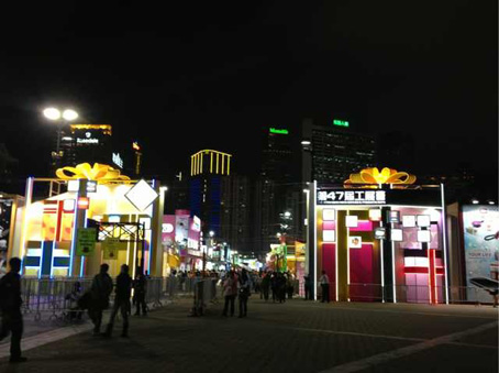 圣诞、元旦、春节,三个连续的却标志着文化差异的节日,在香港都有着不同的呈献与融合。圣诞是一如既往的璀璨夜色中繁星闪烁般的浪漫灯光,春节迪士尼卡通融进了中国,通常在元旦前举行的香港一年一度的工贸展,依旧云集了来自香港和世界的各种食品、生活用品和保健品,参展单位各自宣传,免费试吃,从几十种汤料到知名燕窝、从专用擦皮具油到电动保健座椅,应有尽有,形式大有大陆庙会之感,但内容却是包罗万象,走一圈下来用时不会少于3小时,本地人居多,其中不乏快乐主妇。这,就是香港,在三个连续的节日中不断更换主题的多元化的城市。■ 冰蓝/摄