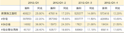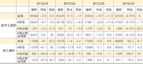 表3 2012年四个季度房屋建设情况(单位:万平方米,%)