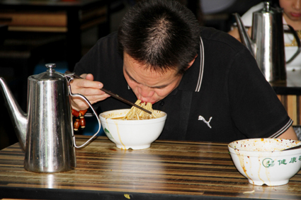 而在外乡人的眼里,兰州人的早晨是从一碗拉面开始的。遍地开花的牛肉面馆,埋头吃面的妇孺老幼,在一碗面的面前,众生平等,一位兰州大叔说,“吃不到面会得神经病。”这就是兰州人的生活哲学。有点像发飙,却又率真得有趣。