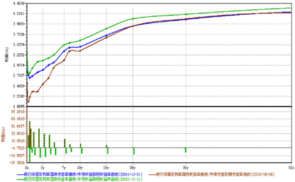 尽管回购利率在11月初开始逐步回落,但由于投资者心态谨慎,收益率变动不大。随着海外避险情绪因美国财政悬崖问题而有所增强,尤其是外资行对利率债的购买力度上升推动收益率小幅下行。10年期国债收益率从高位3.58%水平逐步回落到3.50%附近,10年期国开债收益率降至4.38%。进入下旬后,国内11月份汇丰PMI预览值显示经济增长动力继续恢复,推动国内债券收益率有所回升,10年期国债到3.53%,5年期非国开政策性银行债收益率回升到4.03%,10年国开债升至4.45%,收益率曲线相比于10月末有所变陡。