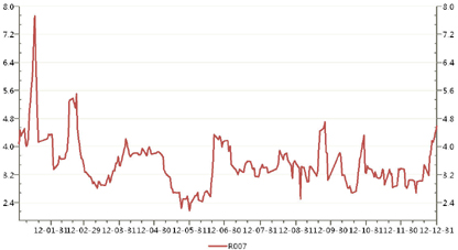 图4 2012年银行间7天质押式回购利率走势