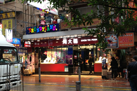 曾经让香港人留恋的以云吞面、牛腩面和各种粥而著名的小店叫做“利苑粥面专家”,现已改头换面穿戴上了金银珠宝——全港拥有80家左右旗舰店的周大福。