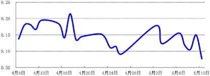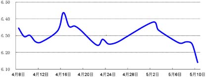 受4月高于预期的中国贸易数据,以及央行推进汇率改革的政策预期影响,人民币升值节奏加快,人民币兑美元即期价格本周累计升值0.2%。