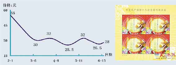 今年发行的小版张相对稳定,其中“十二届人大”、“雷锋题词50年”、“桃花”、“中国古镇”、“景泰蓝”和“母亲节”小版张基本上分别维持在7元、20.5元、24元、16.2元、13.8元和19元附近,短线资金喜新厌旧的痼疾未改。