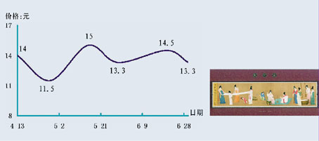 此外,邮市渐弱的另一个重要标志──产品票的热度下降在上半年也逐步显现,吸纳价格由前两年的涨多跌少变为了跌多涨少,且收购量也明显减少。如年初尚如火如荼的“毛泽东”题材邮票,到了6月份吸纳者就减少了三分之二,其中1983年发行的“毛泽东诞生90年”套票年初价格一度跃上百元,但6月份的收购价格则下跌至75元,“壶口瀑布”小型张跌至85元,而年初的价格还在110元左右,JP44“毛泽东诞生百年”则由8.5元回调至6.5元。当然,产品票仍是上半年市场的主流热点,也是成交最活跃的板块,这其中“红色题材”热度不减,收购品种继续小幅增多,惟部分品种的收购价格有所下降。
